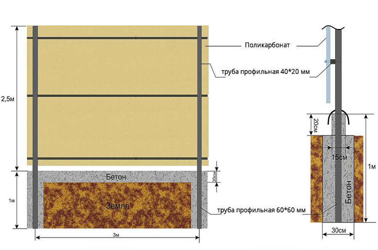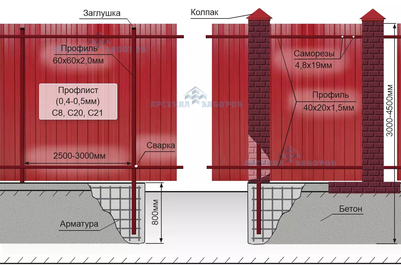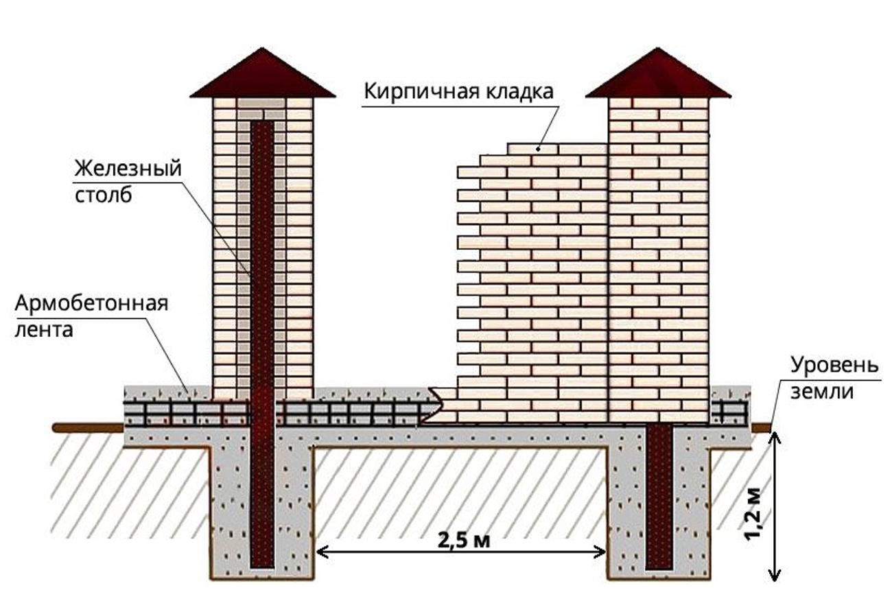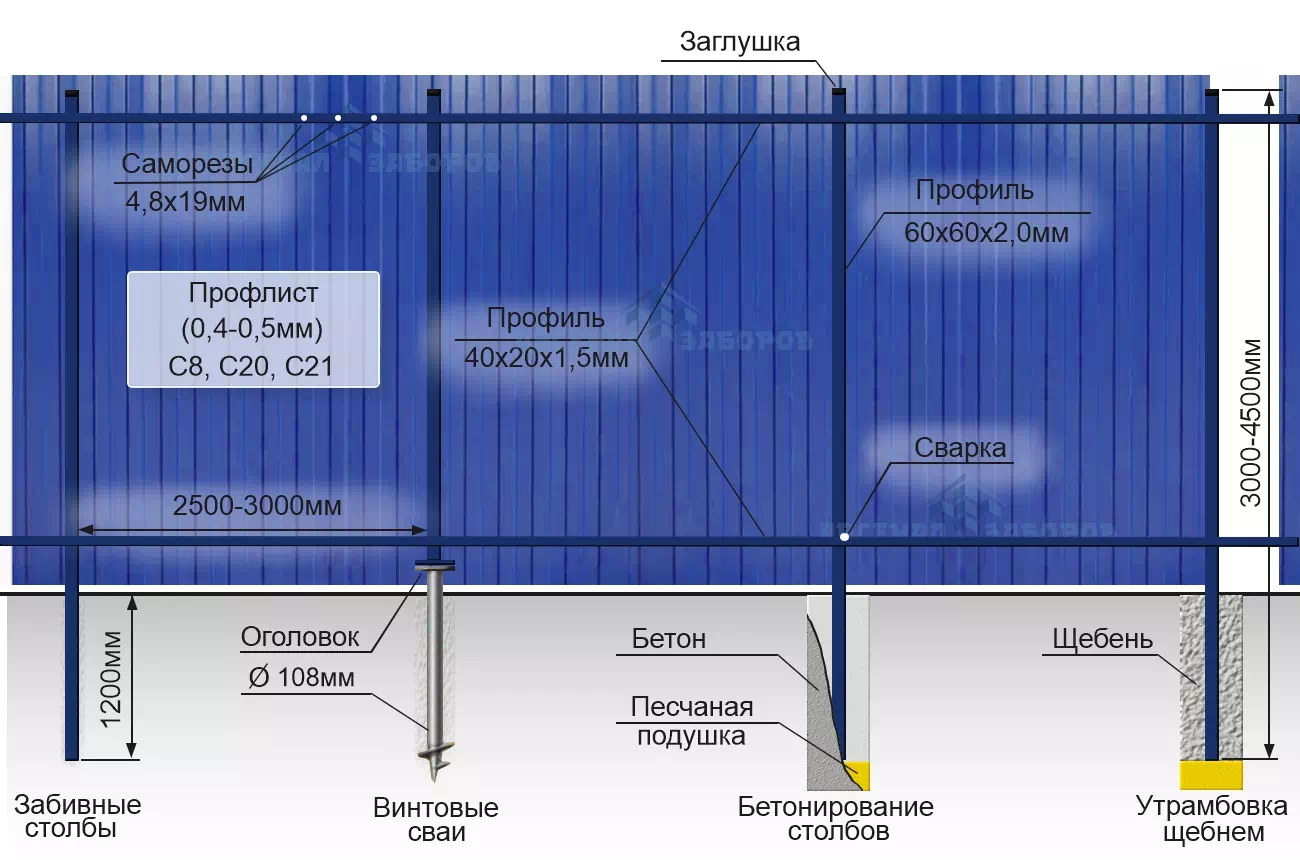 Конструкция забора из евроштакетника на ленточном фундаменте