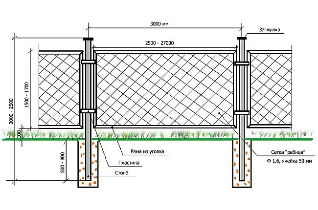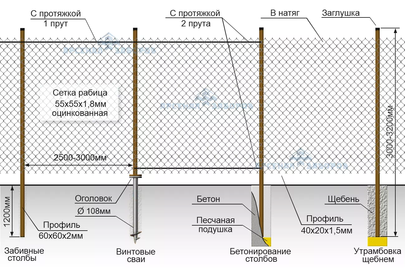 • Конструкции забора из сетки-рабицы в натяг и с протяжкой арматуры