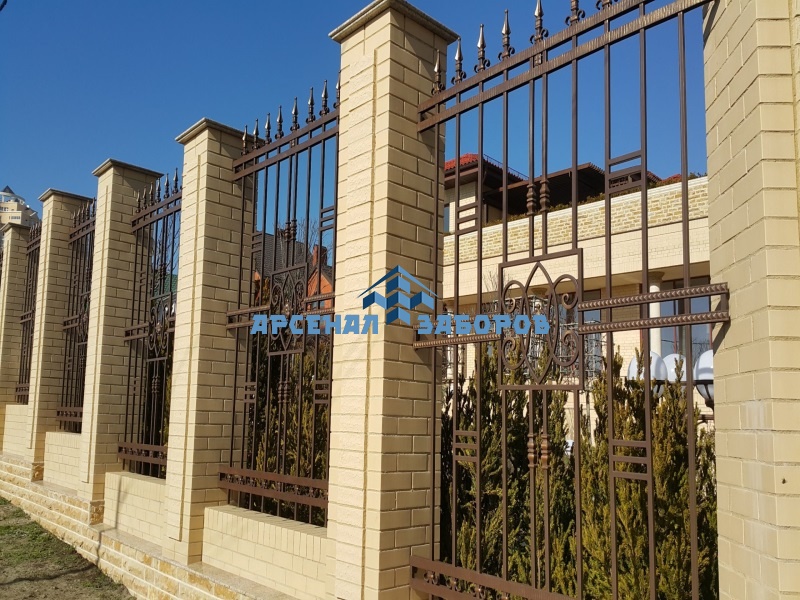 Фото работ - кирпичный забор с ковкой